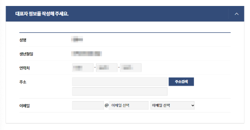 주소 역시 사업자등록시 사용하셨던 주소를 입력하시면 됩니다.