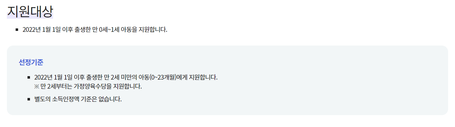 2024년부터는 만 0세 아동은 100만 원의 지급 금액을, 만 1세 아동의 경우 50만 원의 금액을 지급받을 수 있다고 합니다. 참고하시기 바랍니다.