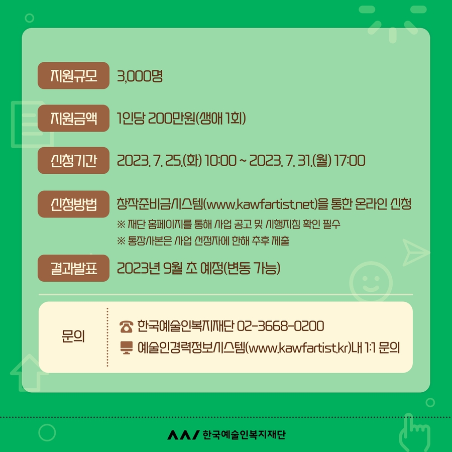 ㅇ (유선) 한국예술인복지재단 콜센터 02)3668-0200