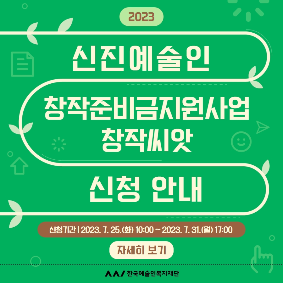 정부지원사업 혜택 알리미 2023. 8. 24.정부에서 신진예술인의 지속적인 창작활동을 위한 창작준비지원 창장씨앗 지원금을 지급하고 있다는 사실 알고 계셨나요?