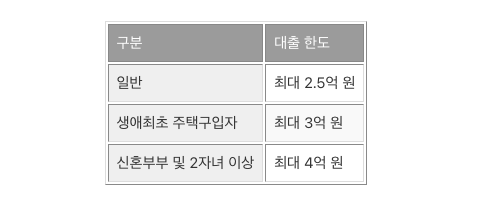 1-1. 신혼가구나 2자녀 이상 가구는 6억 원까지 가능합니다.