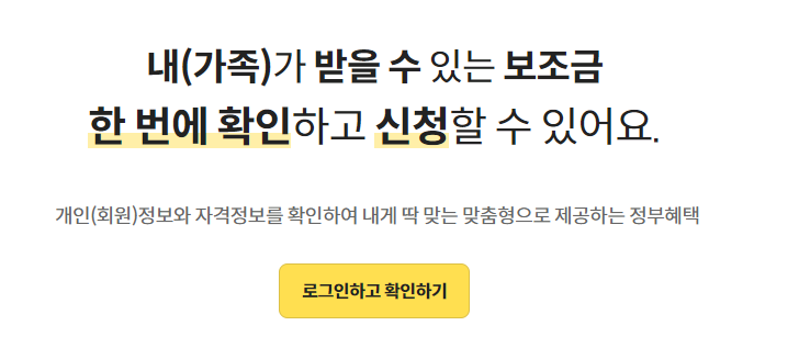 그래서, 정부에서는 자신이 받을 수 있는 정책을 한 번에 찾아주는 ‘보조금 24’라는 서비스를 제공하고 있습니다.