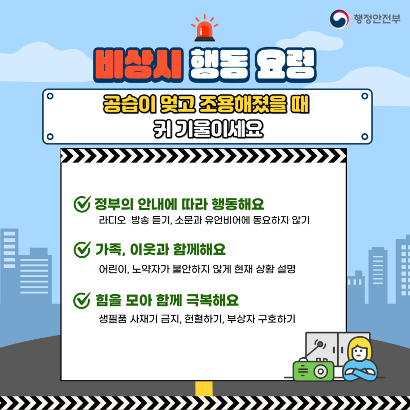 공습경보 안내 : 3분간 물결치는듯한 사이렌 소리