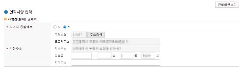4. 인적사항 입력란, 사업장 소재지란에 변경하고자 하는 사업장의 주소를 기입합니다.