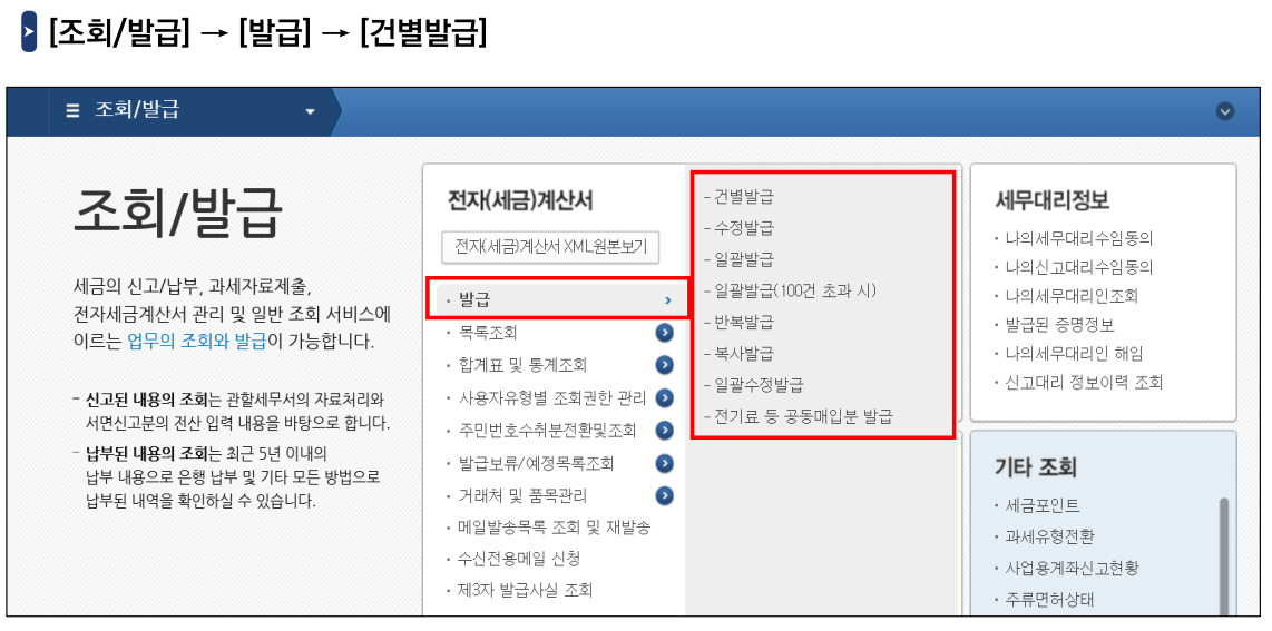 [홈택스] 전자세금계산서 인터넷 발급 및 수정, 조회 방법
