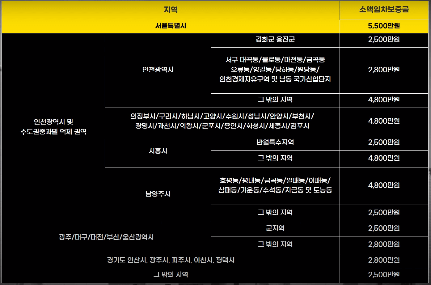 청산가치 중 가장 큰 비율을 차지하는 것은 역시 부동산, 임차보증금일텐데요, 다행히도 부동산이나 임차보증금에 대해서는 "소액임차보증금 보호 범위"라는 것을 적용하여 지역별로 일정 금액을 청산가치 산정시 제외할 수 있습니다.