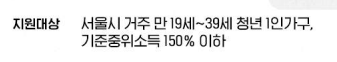 서울시 사업은 만19세~34세, 기준 중위소득 60% 이하 청년만이지원 가능한 정부 청년월세 한시 특별지원 사업에 비해 만19세~39세 기준 중위소득 150% 이하의 청년도 지원할 수 있어 보다 광범위한 청년층을 대상으로 합니다.
