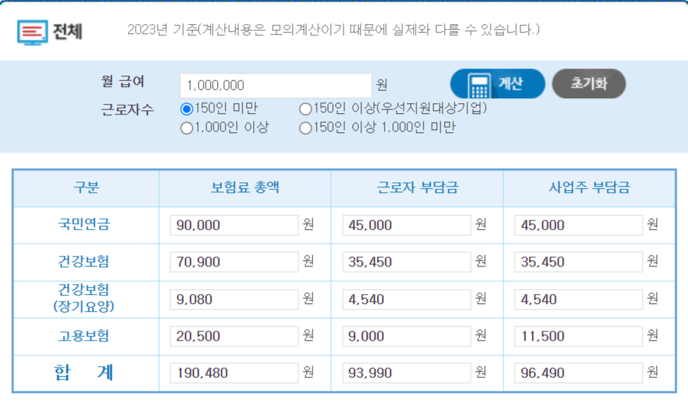 4대사회보험 정보연계센터를 통해 자신의 월급과 회사규모에 따른 4대사회보험료 모의계산이 가능합니다.